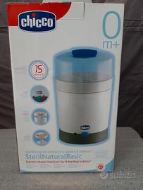 Vendo sterilizzatore naturale elettrico a vapore Chicco Steril Natural Basic per la sterilizzazione di tutti gli oggetti del bambino (biberon, tettarelle, succhietti, giochi, stoviglie, etc.) rapidamente e in modo naturale. Sterilizza fino a 8 biberon contemporaneamente, basta versarci un cucchiaio di acqua e accenderlo e fa tutto da solo, fino a spegnersi a sterilizzazione avvenuta.