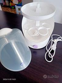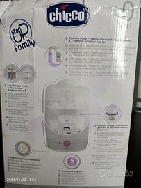 Sterilizzatore elettrico a vapore Sterilnatural, cestelli adatti a tutte le diverse linee di biberon Chicco - contiene fino a 7 biberon Chicco della linea Benessere e 4 biberon della linea Step Up - disinfetta in 5 minuti e mantiene gli oggetti disinfettati per 8 h se non viene rimosso il coperchio - sicuro con spegnimento automatico