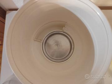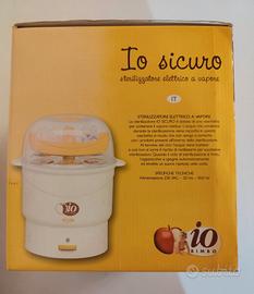 Comodissimo sterilizzatore elettrico a vapore modello "Io Sicuro" della linea Io Bimbo, ideale per igienizzare in modo rapido e sicuro biberon, tettarelle e accessori del tuo bambino. Grande Capacità: Può contenere fino a 6 biberon contemporaneamente più relativi accessori (tettarelle, ghiere, ecc.). Igienico: Dotato di una vaschetta speciale per la raccolta del vapore residuo. L'acqua di condensa non rientra in contatto con i prodotti sterilizzati, garantendo la massima igiene. Automatico: Si spegne da solo a fine ciclo ed emette un segnale acustico (8 rintocchi) per avvisarti che il processo è terminato. Semplice da usare: Funziona con comune acqua di rubinetto trasformata in vapore. Specifiche tecniche: Alimentazione 230V – 50Hz – 400W. Condizioni dell'oggetto: L'articolo è completo di scatola originale (come da foto). Perfettamente funzionante e ben tenuto.