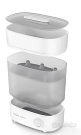 Sterilizza fino a sei bottiglie di accessori in soli 10 minuti. Questo elegante e avanzato sterilizzatore per biberon convince grazie alla sua elevata capacità, è veloce ed efficiente, uccidendo il 99,9% dei germi*, in modo da avere una buona sensazione ad ogni pasto. Progettato per ridurre gli odori sgradevoli e rimane sterile per 24 ore* quando il coperchio è chiuso, rendendolo il complemento perfetto per il vostro bambino.