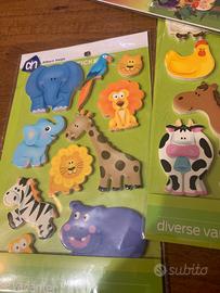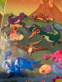 Dinosauri con paesaggio su cui costruire la vostra storia proseguendo poi con gli animali domestici e selvatici in rilievo da attaccare disegni creativi