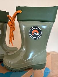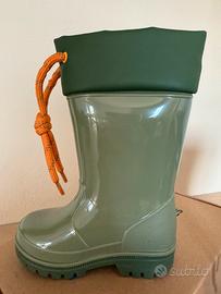 Vendo stivaletti antipioggia per bambini, taglia 21, colore Verde, marca Mayoral, acquistate a ottobre su richiesta dell’asilo, ma utilizzate solo una volta forse nel giardino dell’asilo, quindi NUOVE, Si vede dalle foto.