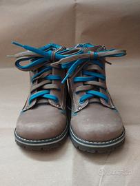 Stivaletti da bambino di colore marrone con doppia stringa, usato ma in ottime condizioni. Non presentano difetti. Marca: Chicco. Taglia: 27.