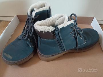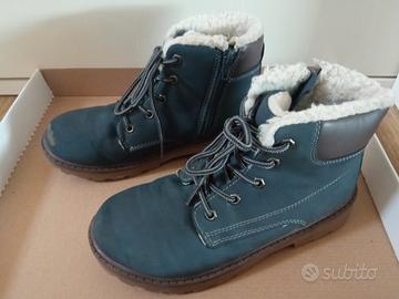 Stivaletti da bambino n.35 con interno morbido in pile effetto pecora. In ottimo stato, solo lo stivaletto destro è leggermente rovinato sulla punta (come si vede in foto).