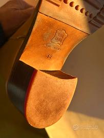 Suola robusta in vero cuoio con rivestimento antiscivolo in gomma.