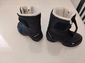 Doposci trekking Quechua n. 24/.colore nero, facili da infilare grazie all ampia apertura e allo strap impermeabili e con fodera interna calda. Usati poco, in ottimo stato dia interno che esterno