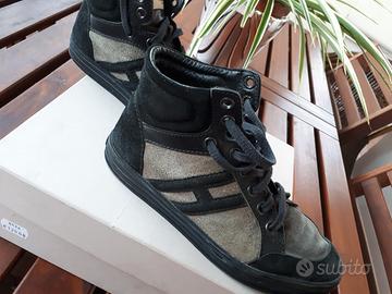 Stivaletti Hogan originali, n. 33, in pelle e camoscio nero e grigio, suola in gomma. ottime condizioni