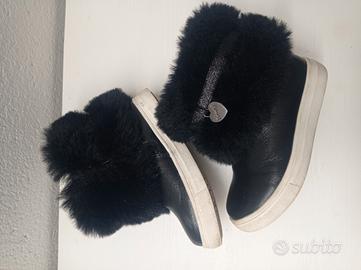 stivaletto scarponcini con pelliccia nero numero 23 cuori decorazioni chiusura zip come nuovi