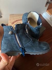 Stivaletti GioiEcologiche di pelle blu con zip laterale, taglia 24