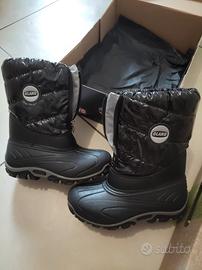 Usati una sola volta, stivaletti da neve imbottiti nero lucidi taglia 29/30, marca Olang.