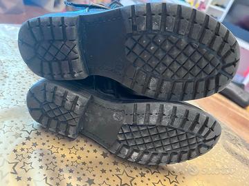 Stivaletti n27 neri, marchio Asso, morbidi e confortevoli.Un po’ usurati sul davanti ma sistemati con gel riparatore per pelle e lucido per scarpe.Non ricordo il materiale ma credo siano in pelle, sono molto morbide.Interno foderato in tessuto