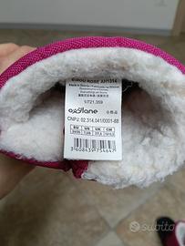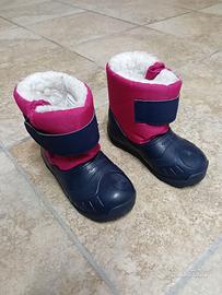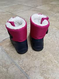 Stivali da neve (moon boot) bambina tg. 24-25. Colore: fucsia sulla gamba, blu sul piede. Piede impermeabile in gomma. Interno e gambale imbottiti. Caldi e comodi. Chiusura regolabile con velcro. Tenuti molto bene.