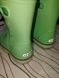 Stivaletti da pioggia CROCS Crocband dal colore verde brillante, perfetti per le giornate piovose. taglia Crocs C9 (bambino) equivale al numero 25-26 EU. Questa misura corrisponde a una lunghezza del piede di circa 15,7 cm. - Design alto e comodo. - Manici laterali per facilitare l'indossamento. - Suola robusta e antiscivolo.