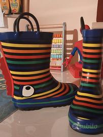 Bellissimi stivali in gomma per fare diventare le brutte giornate di pioggia in divertenti e coloratissimi momenti con il vostro bimbo o bimba. Pari al nuovo, usati in un'unica occasione, misura 26