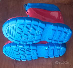 Vendo stivali di gomma impermeabile per la pioggia da bambino n. 32. Con suola antiscivolo e chiusura a coulisse. In perfette condizioni. Usati pochissimo.