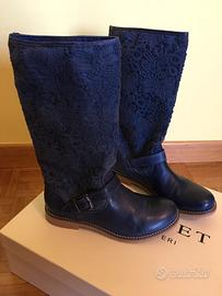 Stivali Twin-set Simona Barbieri color blu gambale in pizzo, taglia 33, nuovi, mai indossati.