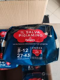 Salve, come da titolo vendo Pannolini Pampers Salvapigiamino. Mutandine assorbenti per bambini da 8/12 anni - 27/43kg. Prezzo al ribasso per inutilizzo. Stock 6 pacchi per 9 mutandine ciascuno. Totale 54 Pannolini al prezzo di 24€ Spedizione disponibile con TuttoSubito ritiro in zona Bologna e provincia. Grazie, Fortunato.