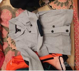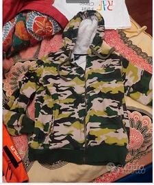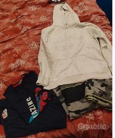 Dieci pezzi: due giacche sci, un pantalone sci, un piumino leggero, due felpe molto pesanti, una giacca sportiva di panno. una felpa bianca col cappuccio due pigiami, il tutto in ottime condizioni.