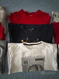 Vendo stock abbigliamento bambino 4-5 anni compreso di 6 maglie maniche lunghe, 3 felpine, 1 maglioncino, 1 gilet, 1 jeans. 12 pz in totale