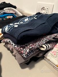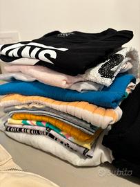 Vendo in stock abbigliamento estivo ragazza (13/14 anni). 14 fra t-shirt e canotte, 6 top, 4 vestiti, 1 tuta intera, 1 paio di jeans neri, 9 pantaloncini (6 di jeans, 3 in tessuto). Marche: Vans, Nike, Abercrombie, HM, Gaudi Jeans, Zara, Stradivarius. Tutto selezionato e lavato. In regalo 3 pigiami estivi.