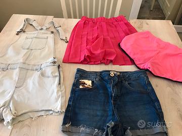 Vengo stock di 12 capi per bimba di 10/11 anni, gonne, vestito, pantaloncini cotone, salopette jeans, pantaloncini jeans, felpa, felpone caldo e morbido