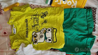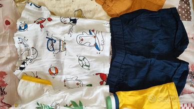 5 completini nuovi composti da pantaloncini e maglietta tg 3/6 mesi + 2 costumi pannolino 0-30 mesi possibili stringerli. No perditempo