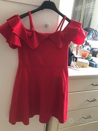 Piccolo stock composto da 7 capi: 1 giubbino di jeans bianco,1 vedtito rossp, 1 felpa unicorno, 3 maglie manica lunga e 1 tshirt.