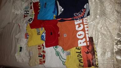 Vendo stock abbigliamento bimbo usato,totale pezzi 74: 15 magliette maniche corte,16 magliette maniche lunghe,14 felpe,3 maglioncini,1 completo manica lungo,6 completi manica corta,3 body a maglietta,4 pantaloni tuta,2 camicie, 3 pantaloncini corti,4 jeans,1 pigiama estivo,1 pigiama invernale,un giacchetto burberry originale,1 giacchetto prenatal. In più regalo una busta di body mezza manica. Principale marca original marines.