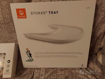Accessori per seggiolone Stokke. Baby set bianco e vassoio bianco, cinture e cuscino con fantasia come da foto.