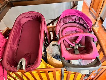 Passeggino Stokke viola, con navicella per primi mesi e passeggino fino a 6 anni.