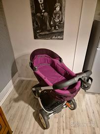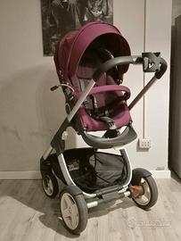Vendo passeggino duo marca Stokke color bordeaux in perfette condizioni, usato poco, composto da seggiolino a tre posizioni diverse e reversibile (fronte strada o fronte mamma) e da navicella.