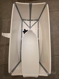 vendo stokke flexi bath con supporto neonato, in ottimo stato. colore bianco con righe grigie.