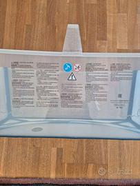 Vaschetta per il bagnetto dei bambini Stokke Flexi Bath, nota per il suo design pieghevole salvaspazio. . Caratteristiche principali Design Pieghevole: Può essere chiusa in modo piatto, rendendola ideale per piccoli spazi o per essere portata in viaggio. . Tappo Termosensibile: La valvola di scarico a forma di stella (visibile nell'immagine) cambia colore per fornire un'indicazione visiva della temperatura dell'acqua. . Materiali Sicuri: Realizzata in polipropilene ed elastomero termoplastico, privi di PVC, ftalati o metalli pesanti . Capacità: versione standard (fino a circa 4 anni). PREFERIBILMENTE CONSEGNA A MANO, GRAZIE
