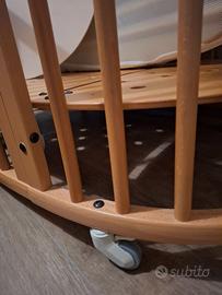 Lettino allungabile Stokke Sleepi V2, prodotto nell'agosto del 2009, utilizzato da 2 bambini ma in perfette condizioni, con asta in legno per appendere la giostrina.