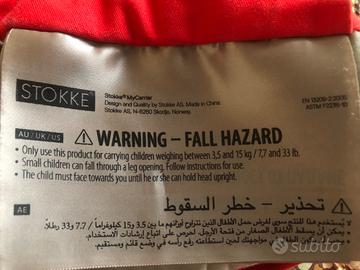 Marsupio Stokke per trasporto bimbi fino a 15KG sia in posizione marsupio anteriore che in posizione zaino. Colore rosso, usato ma in condizioni eccellenti.