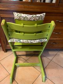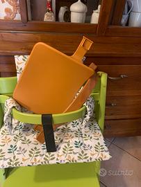 Sedia evolutiva tripp trapp stokke utilizzata ma ancora in buono stato. Il set comprende anche il pezzo new born da utilizzare da 0 a 6 mesi. La fodera presenta una macchia interna che probabilmente con un po’ di trattamento potrebbe andar via ma l’ho vista solamente ora, in ogni caso essendo interna non si nota. Cedo anche un ulteriore seduta marrone. Articolo intramontabile e di grande qualità. Il set comprende anche la fodera bianca con foglie verdi appena ricevuta in regalo.