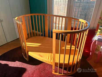Stokke Sleepi è un letto elegante realizzato con legno di faggio robusto, regolabile che evolve ed aiuta a mantenere comfort + familiarità creando un nido accogliente. Adatto a bambini dalla nascita ai 5 anni perché si allunga per adattarsi alle esigenze del bambino che cresce. Il lettino dispone di una base regolabile in altezza, una base perforata che consente la massima circolazione dell’aria. In aggiunta, le ruote piroettanti con freno, facilitano gli spostamenti. Completo di tutto, due materassi (mini e standard) +corredo lenzuola su misura + zanzariera.