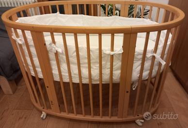 Lettino Stokke (0-6 anni) completo ( 3 materassi, parabordi, asta) colore naturale