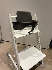 Vendo sedia in buone condizioni con tutti gli accessori in foto: vassoio, babyset e harbess(nuovi). Ho anche cuscino per sedersi e schienale con le stelle baige.