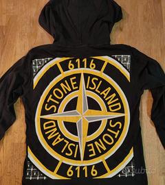 Stone Island Junior felpa nera con cappuccio con logo sulla schiena oro bambino 8 anni lunghezza 50 cm spalle 35 cm