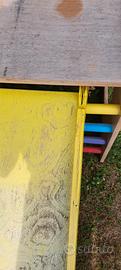 scolorito e con qualche usura come si vede in foto, con 1 pitturata e qualche piccolo ritocco torna nuovo