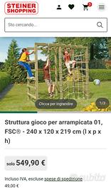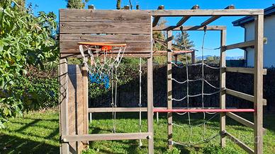 Palestra in legno per arrampicarsi e giocare a basket in giardino. Dotata di sostegni in acciaio inossidabile é sicura e resistente.È in buono stato,necessita solo di una mano di protettivo.