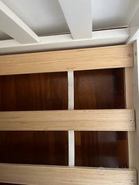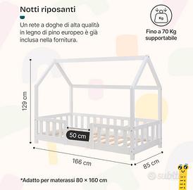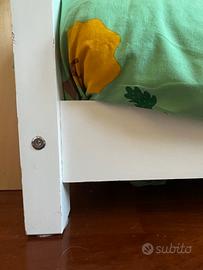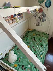 Vendo struttura da letto montessoriano, in legno bianco a forma di casetta. La struttura è in ottime condizioni, presenta soltanto qualche piccolo segno di usura facilmente rimediabile con un po’ di vernice.