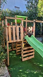Torretta e Scivolo: Una piattaforma elevata (torretta) accessibile tramite una scaletta, collegata a uno scivolo a onda in plastica, lungo 220 cm.