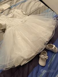 Bellissima Vestina bianca utilizzata mezza giornata per battesimo recente ( 21/11/2021)marca sarabanda (mini banda ) taglia 12 mesi 80 cm , parte superiore pizzo floreale parte inferiore tulle.