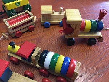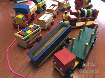 Stupendi giochini in legno, accuratamente verniciati e rifiniti. Modellini di treni, autocarri e quant'altro. Ottime condizioni. Prezzo da considerarsi approssimativo ed a pezzo. Chiamare se interessati.