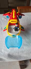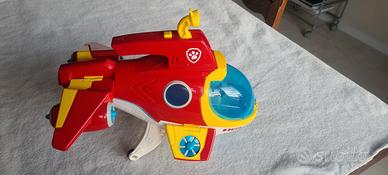 È un veicolo trasformabile che può passare dalla modalità aerea a quella sottomarina, con luci e suoni funzionanti ispirati alla serie TV. Necessita 3 pile LR44 (non inclusi) Ali e periscopio mobili, cabina e porta stiva apribili. Inclusa figurina Ryder, mancano anelli e sub. Può ospitare i cuccioli di Paw Patrol al suo interno.Misure lunghezza 37cm; altezza 27; larghezza 12cm. Disponibile x spedizione o x ritiro a Monterotondo (RM).