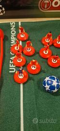 Gioco Subbuteo Champions League con 2 squadre, 1 campo da gioco, 2 reti, 1 pallone da subbuteo + uno supplementare. L'unica cosa è che c'è un dischetto rosso con giocatore blu, come in foto