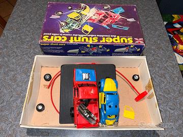 2 auto che si scontrano e vanno in mille pezzi per poi essere ricostruite e giocare ancora... anno 1981. Auto complete e funzionanti. Confezione con segni del tempo.