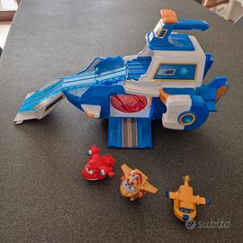 Super Wings, PLAYSET AEROPORTO WORLD AIRCRAFT + 3 GIOCATTOLI TRANSFORM-A-BOTS Jett Donnie, Golden boy